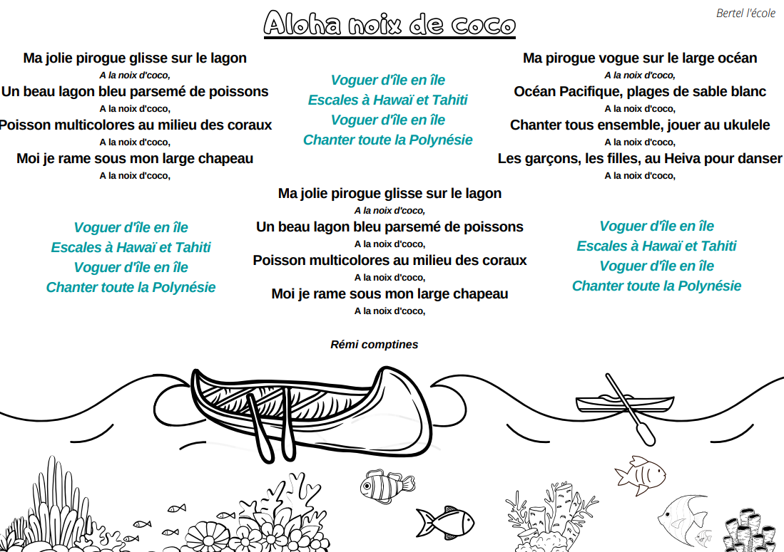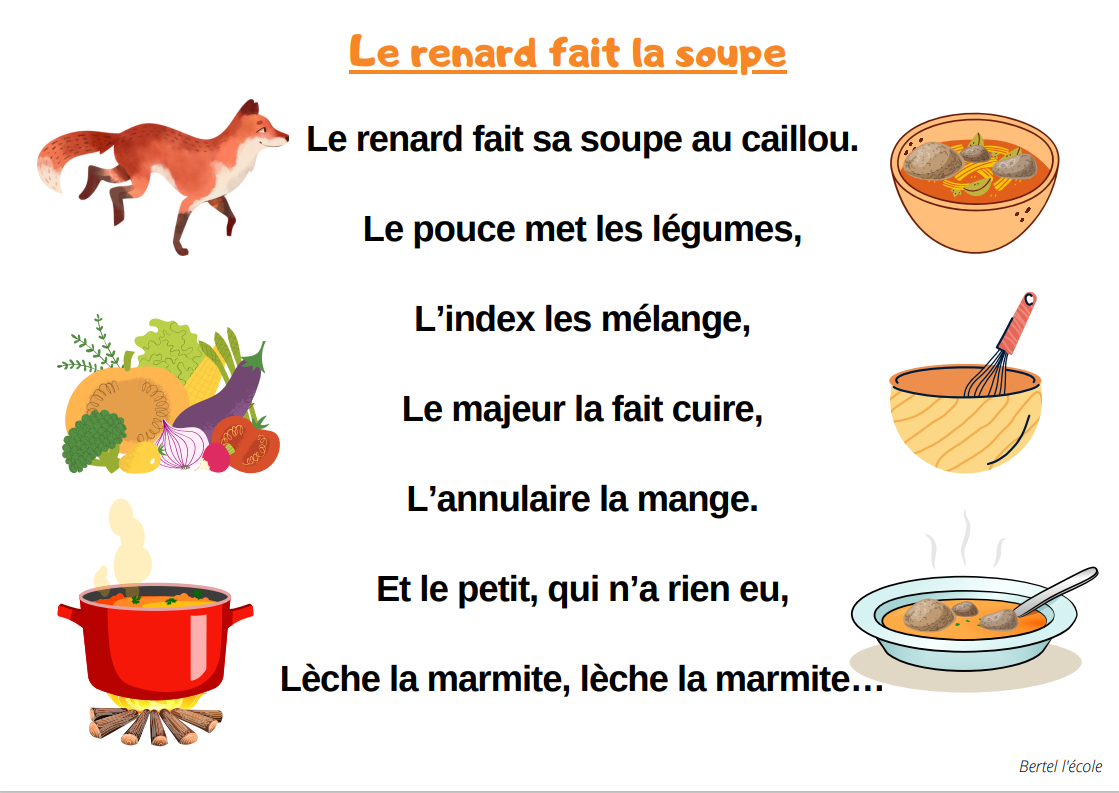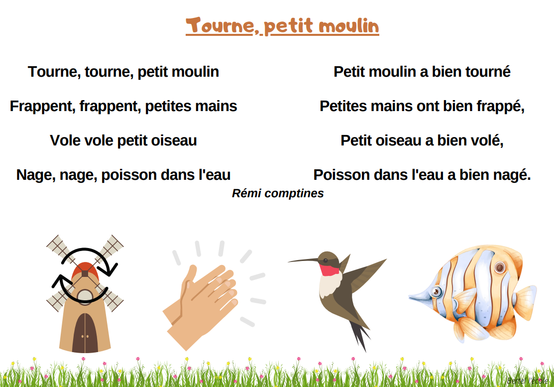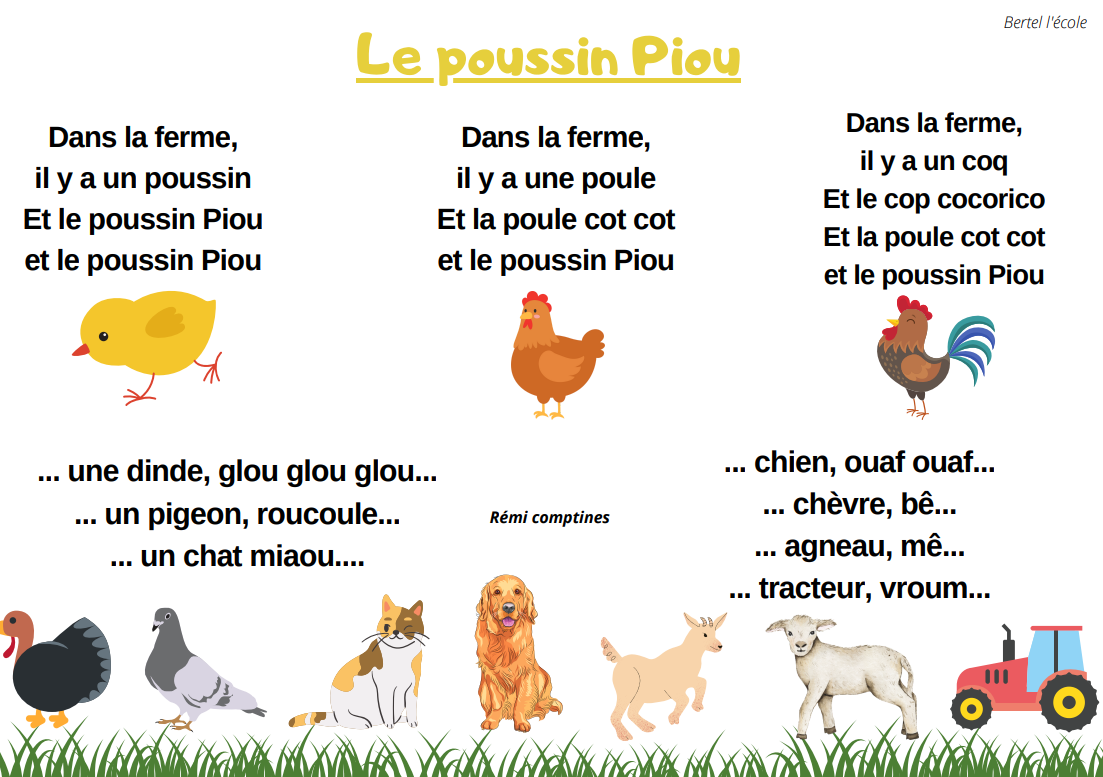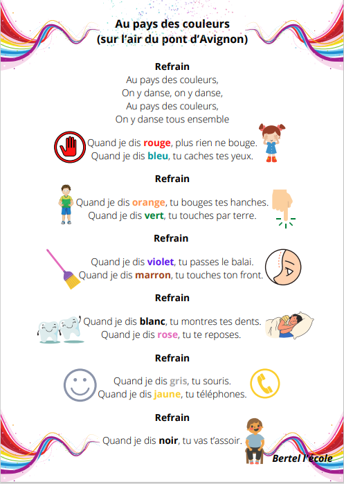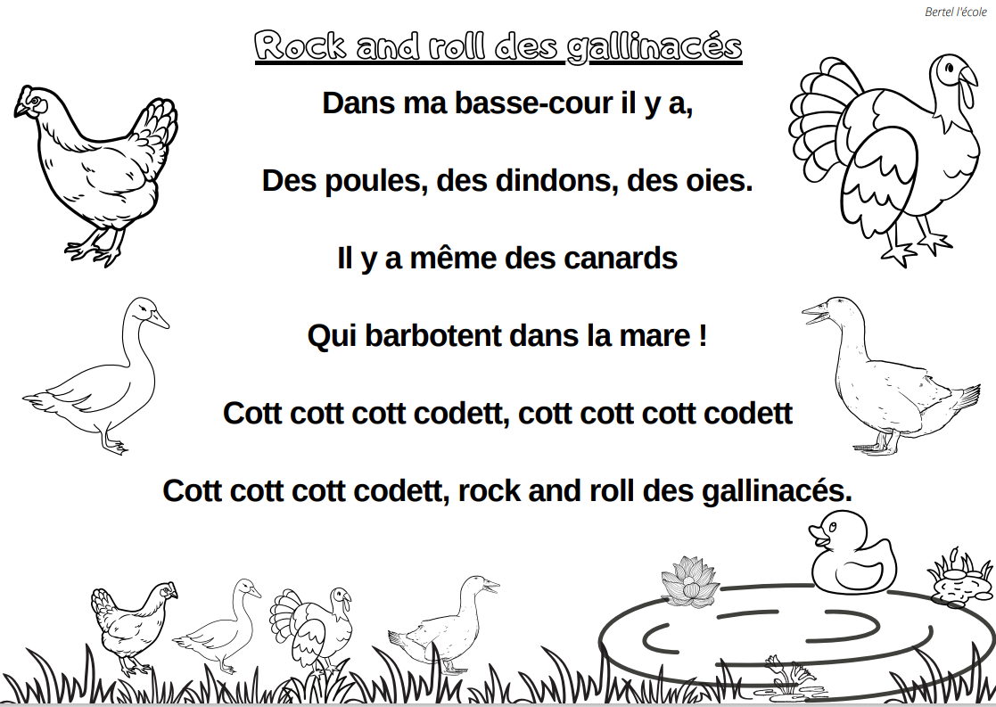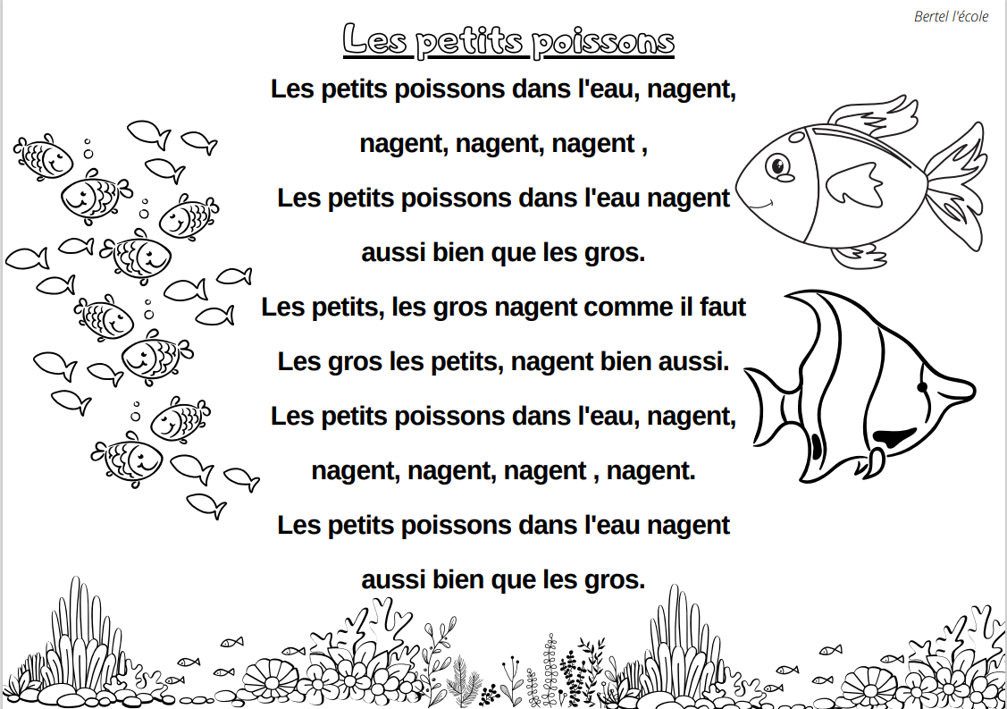 Voici quelques petites comptines et chants que j’ai remis en page grâce à CANVA. Il y a les classiques mais aussi les chants et comptines utilisés dans les manuels « Vers la phono. » Vous pouvez télécharger le format à afficher en classe ainsi que celui à distribuer aux élèves afin qu’ils le décorent.