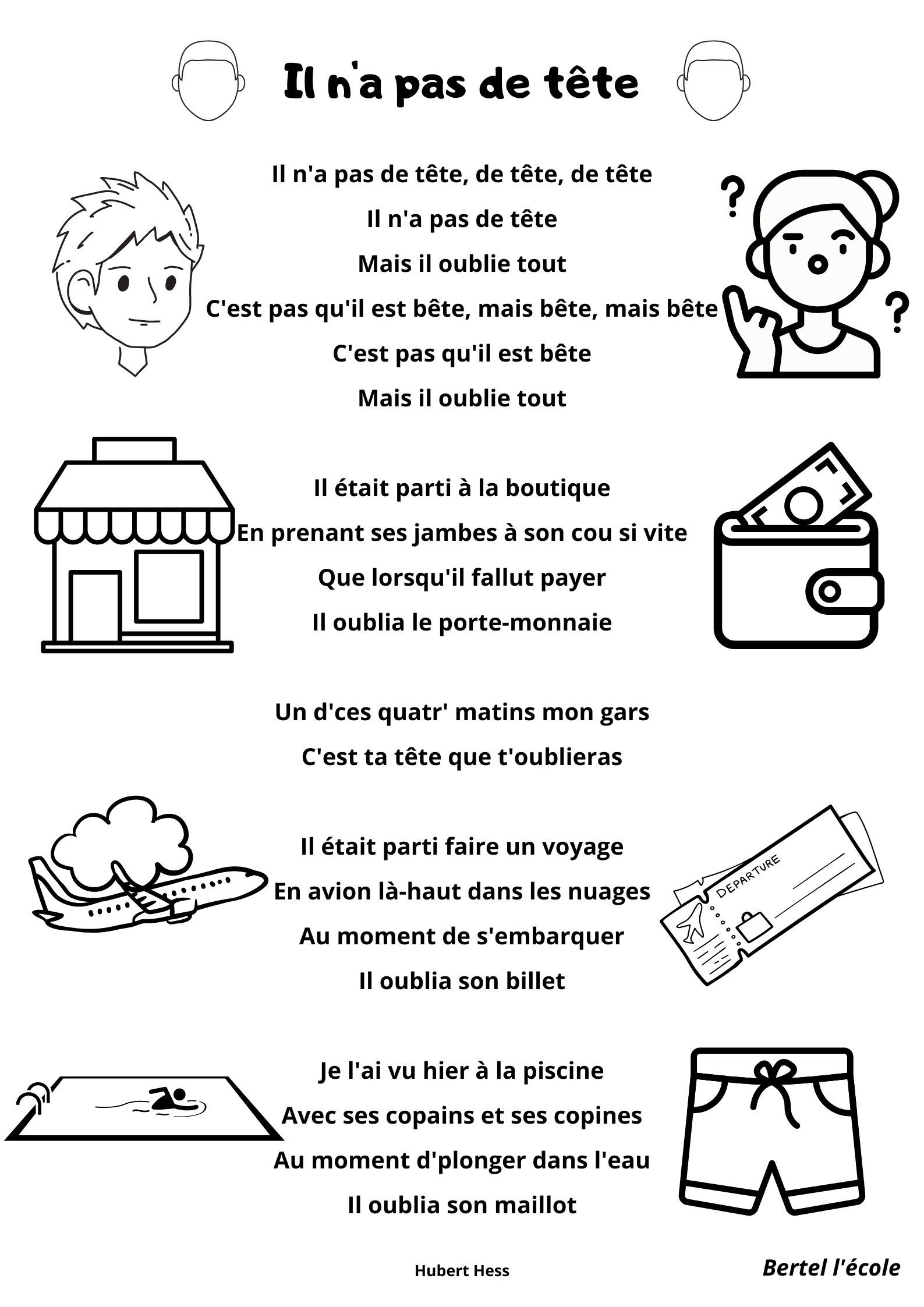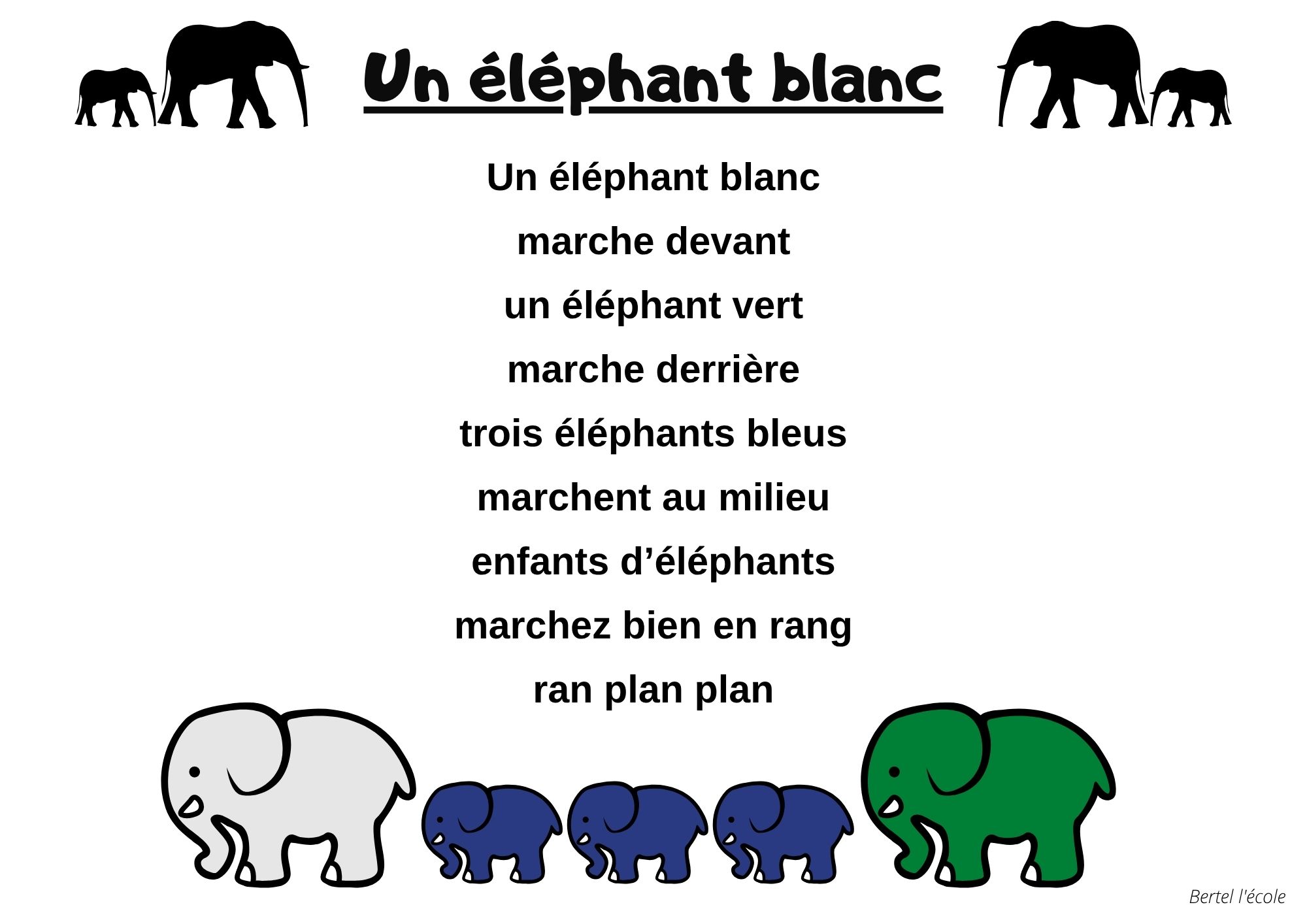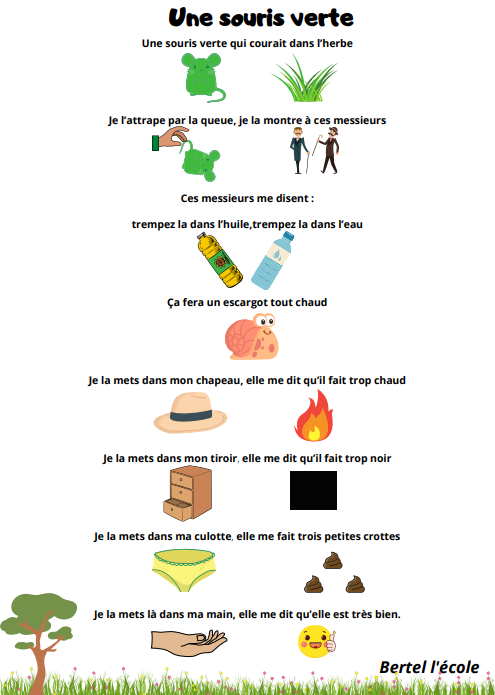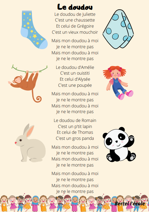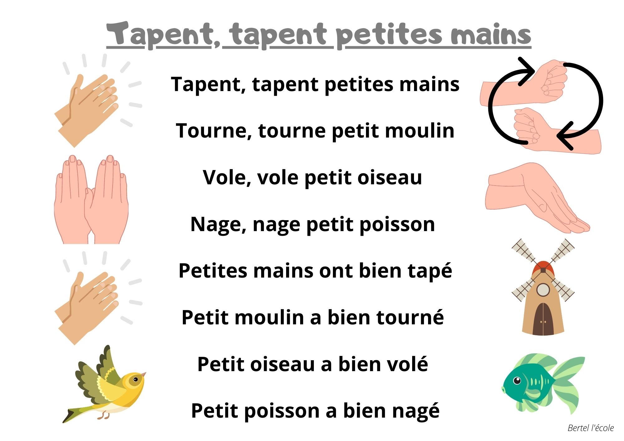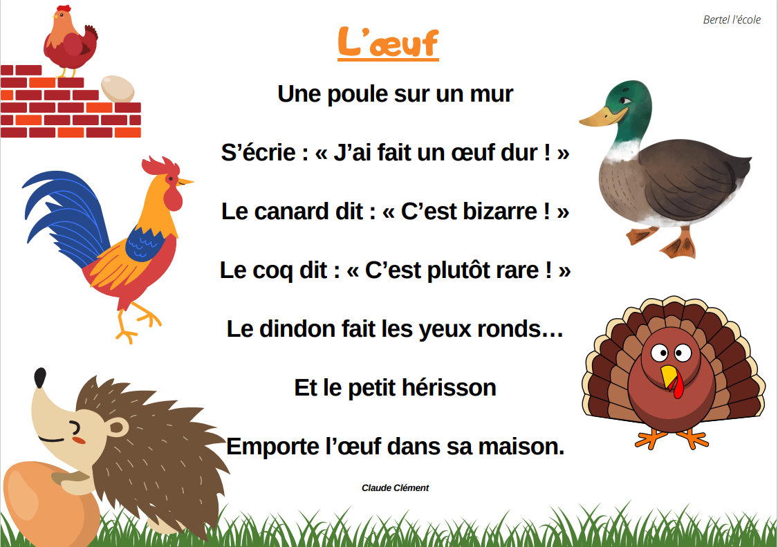 Voici quelques petites comptines et chants que j’ai remis en page grâce à CANVA. Il y a les classiques mais aussi les chants et comptines utilisés dans les manuels « Vers la phono. » Vous pouvez télécharger le format à afficher en classe ainsi que celui à distribuer aux élèves afin qu’ils le décorent.