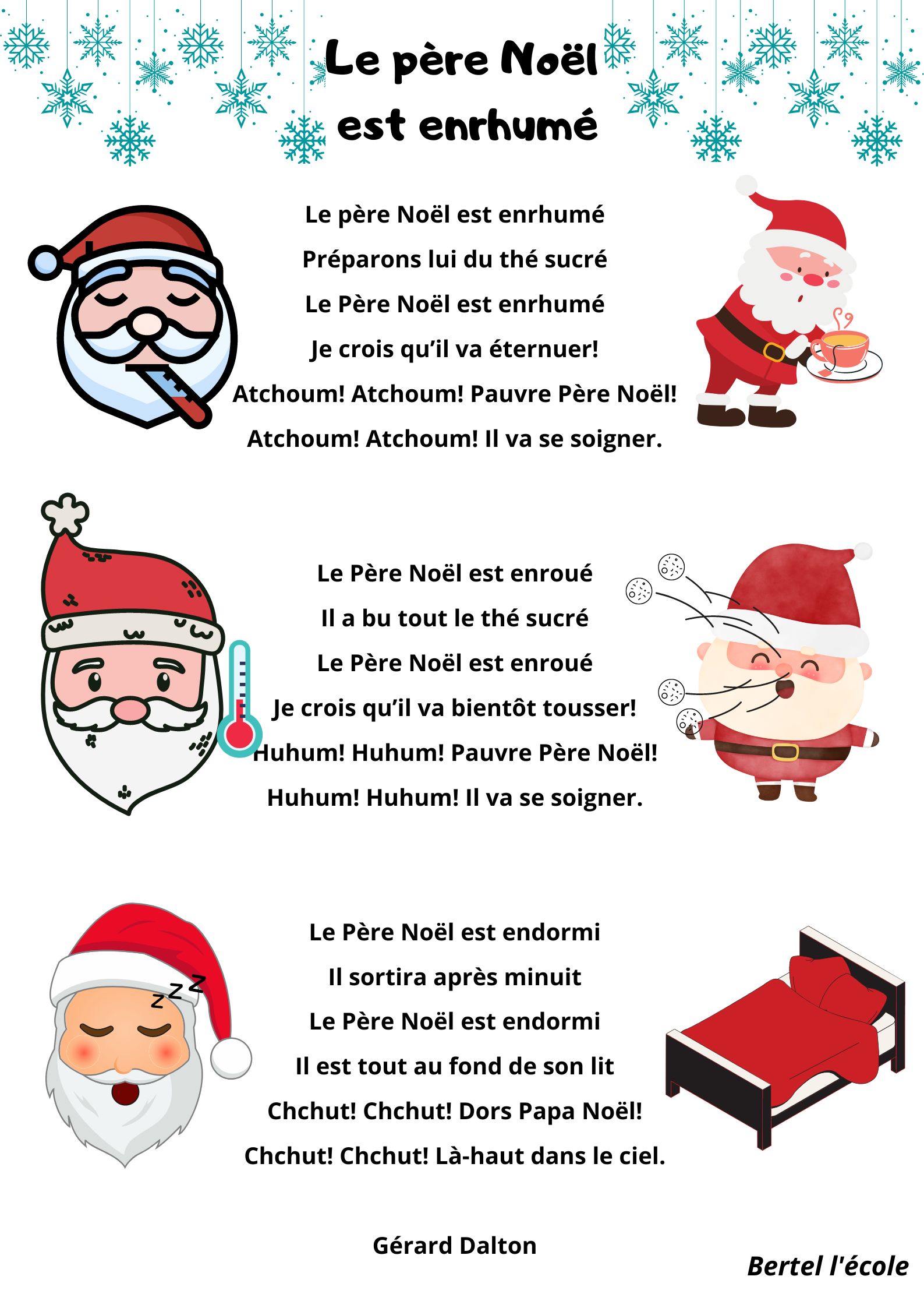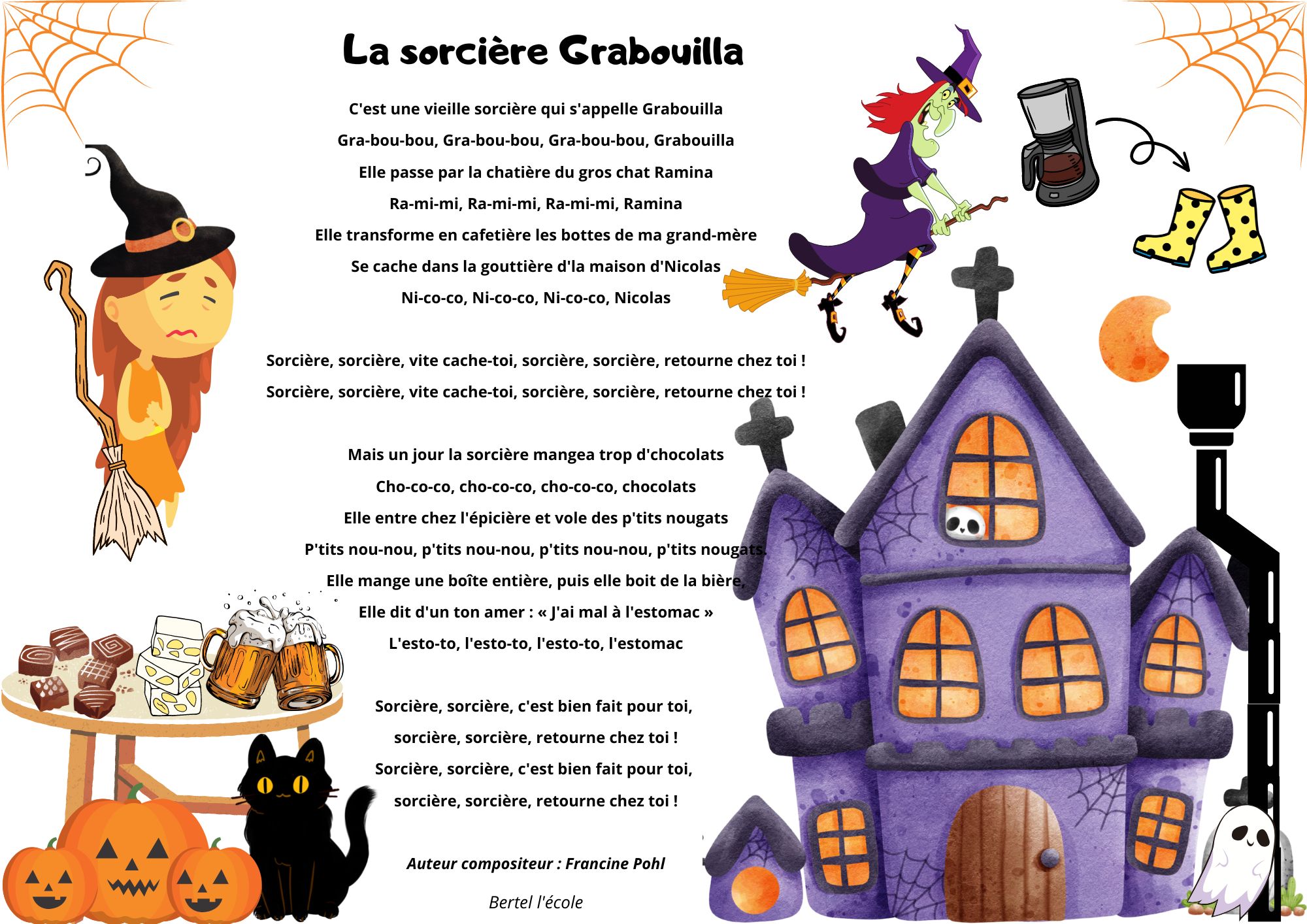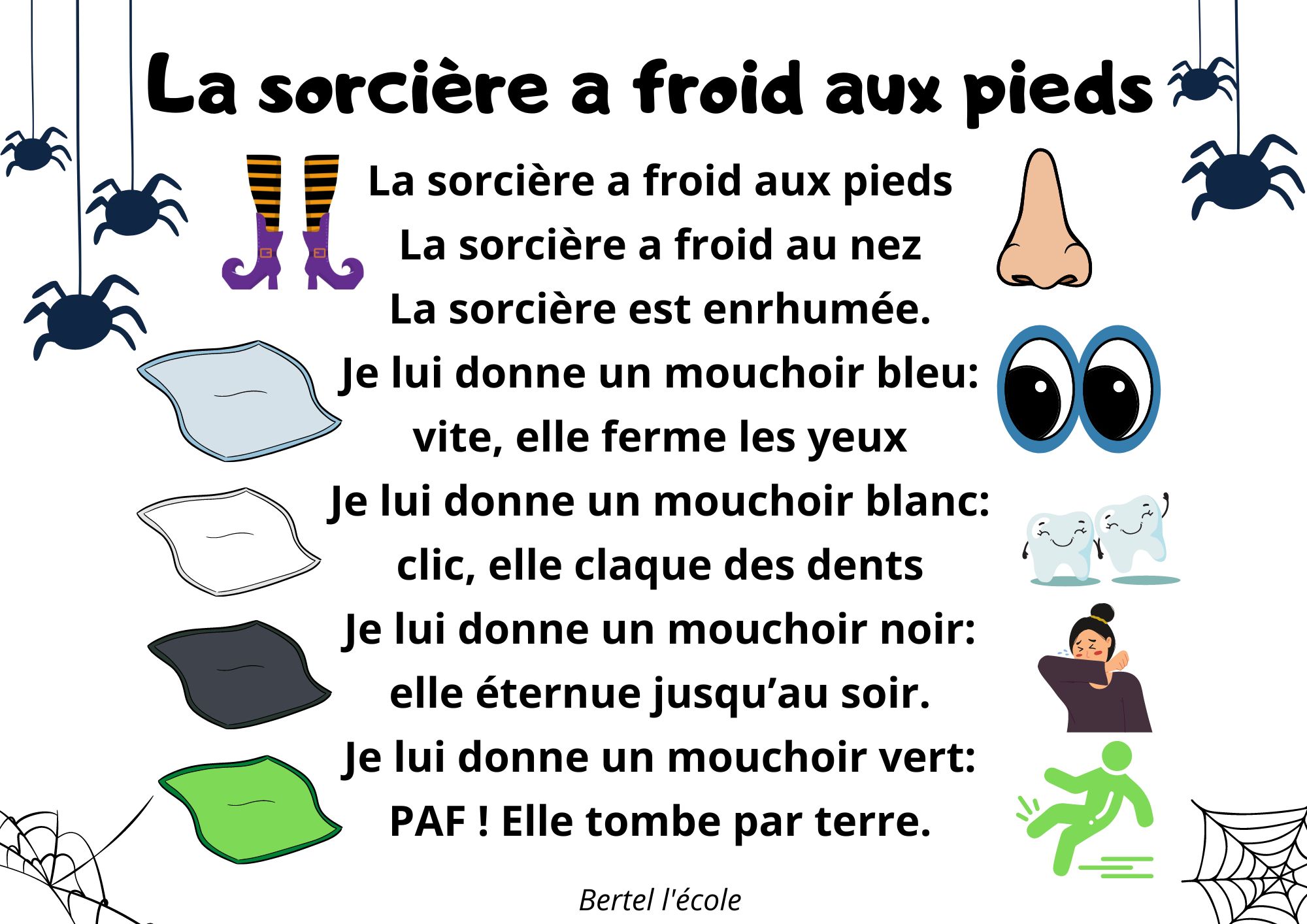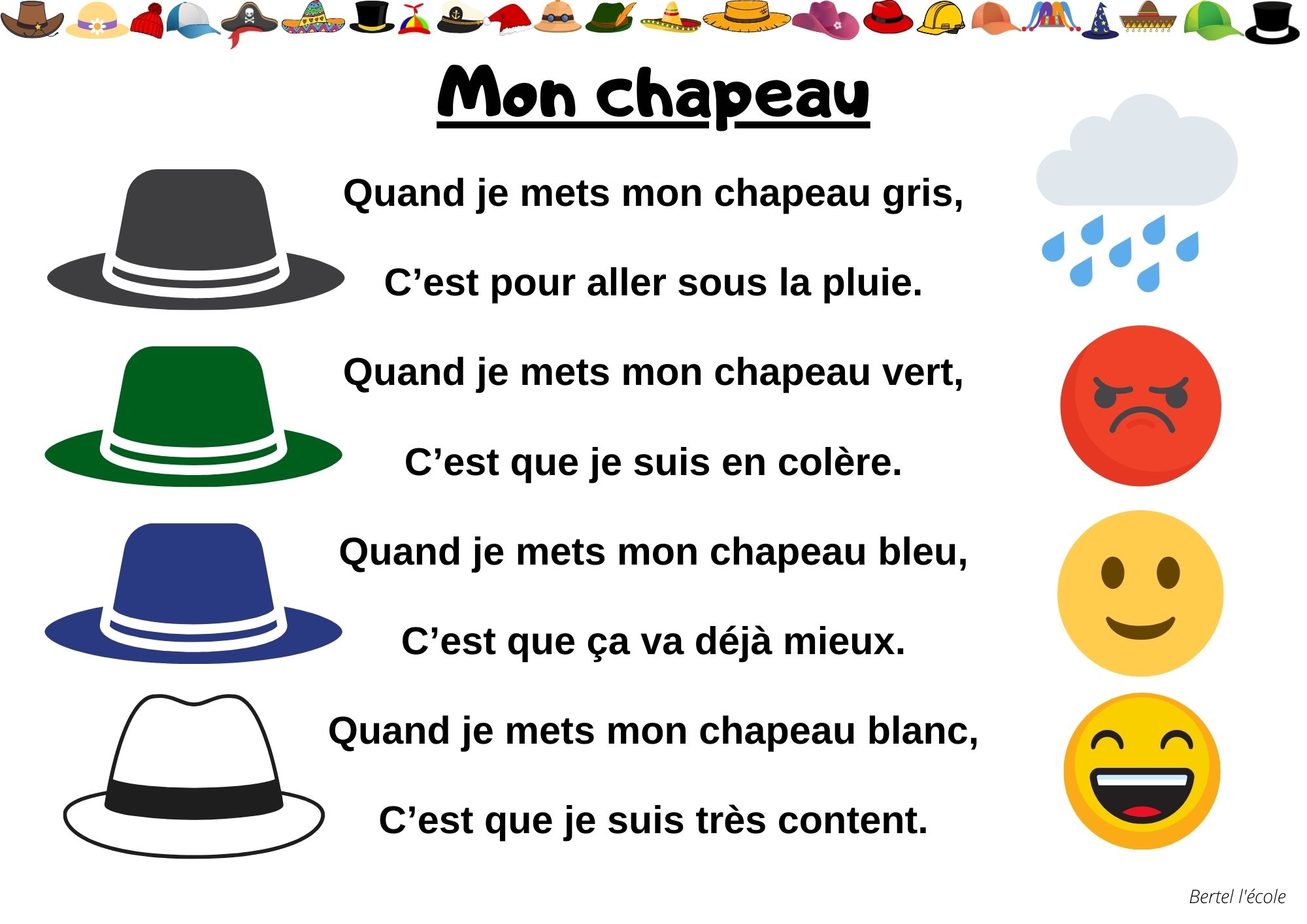 Voici quelques petites comptines et chants que j’ai remis en page grâce à CANVA. Il y a les classiques mais aussi les chants et comptines utilisés dans les manuels « Vers la phono. » Vous pouvez télécharger le format à afficher en classe ainsi que celui à distribuer aux élèves afin qu’ils le décorent.