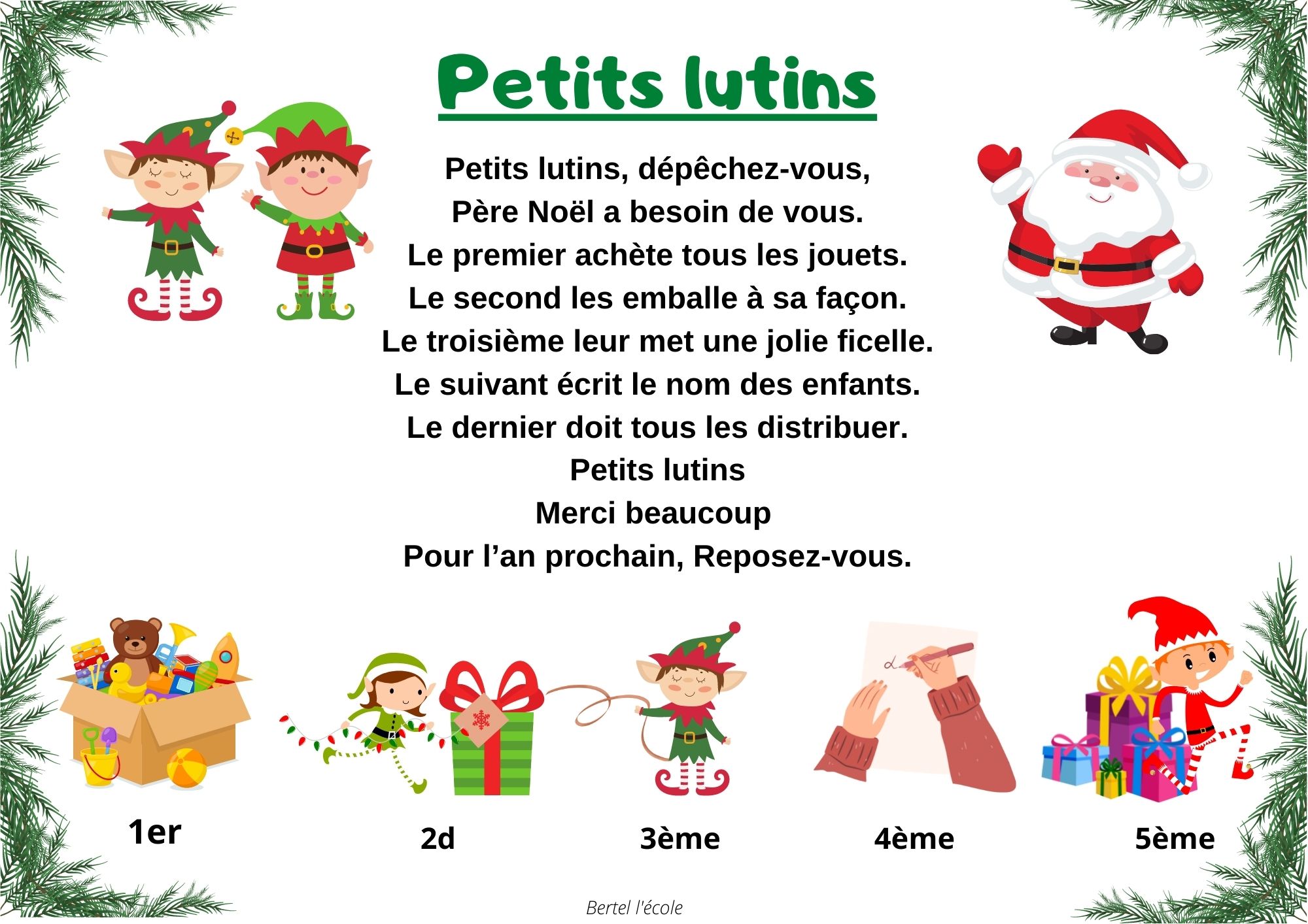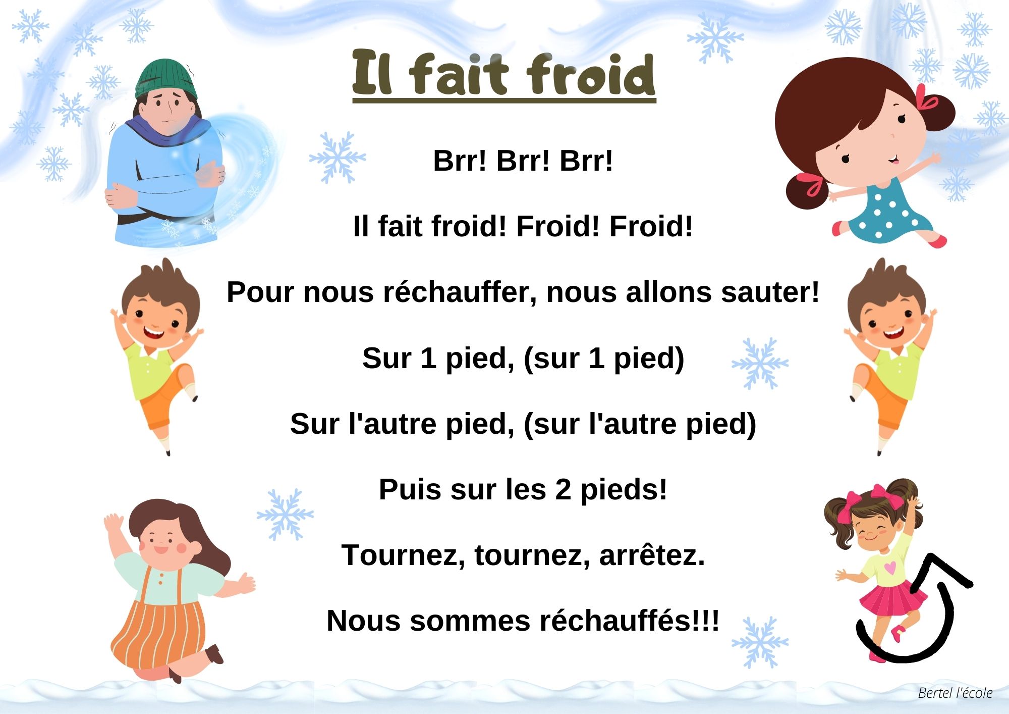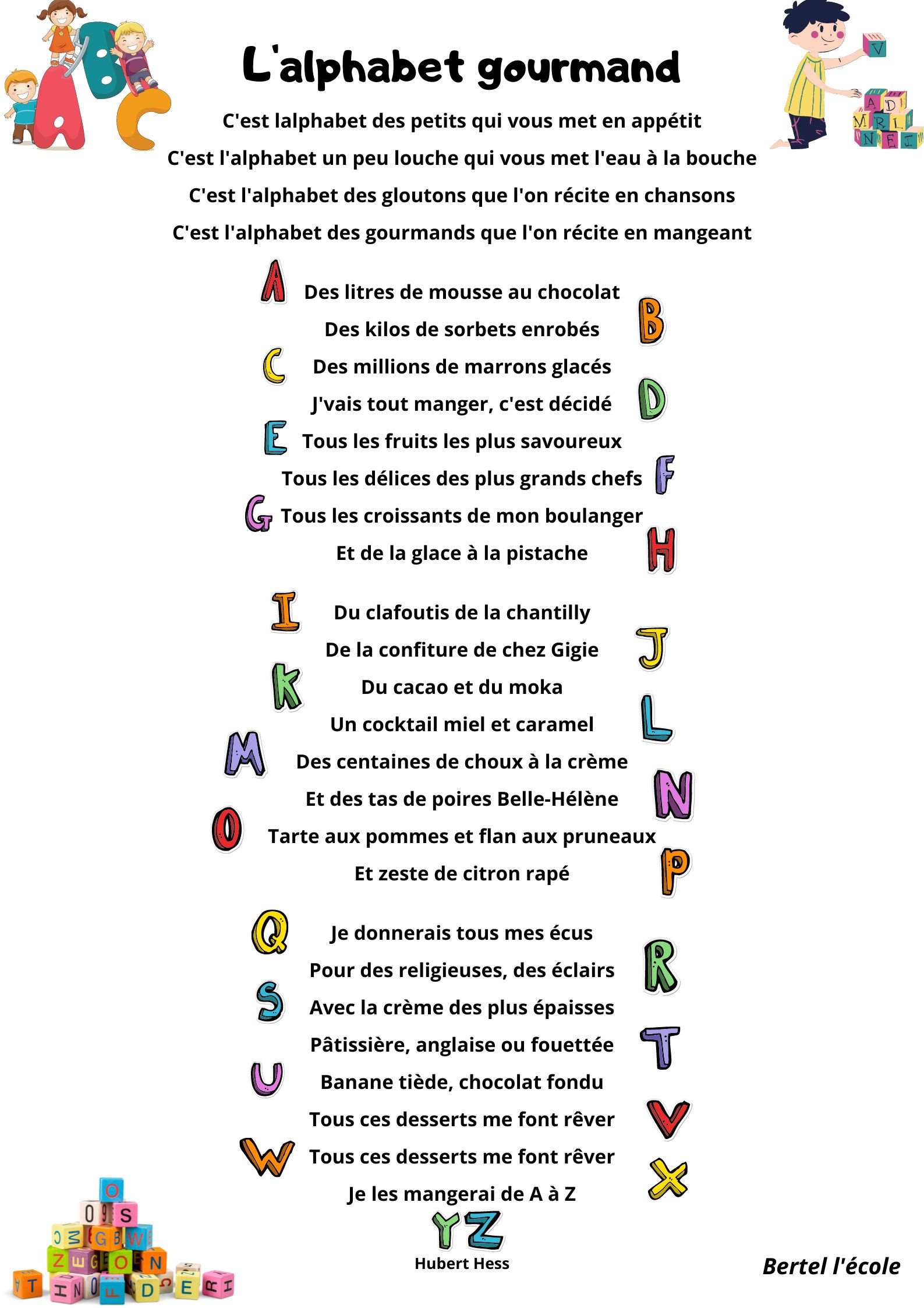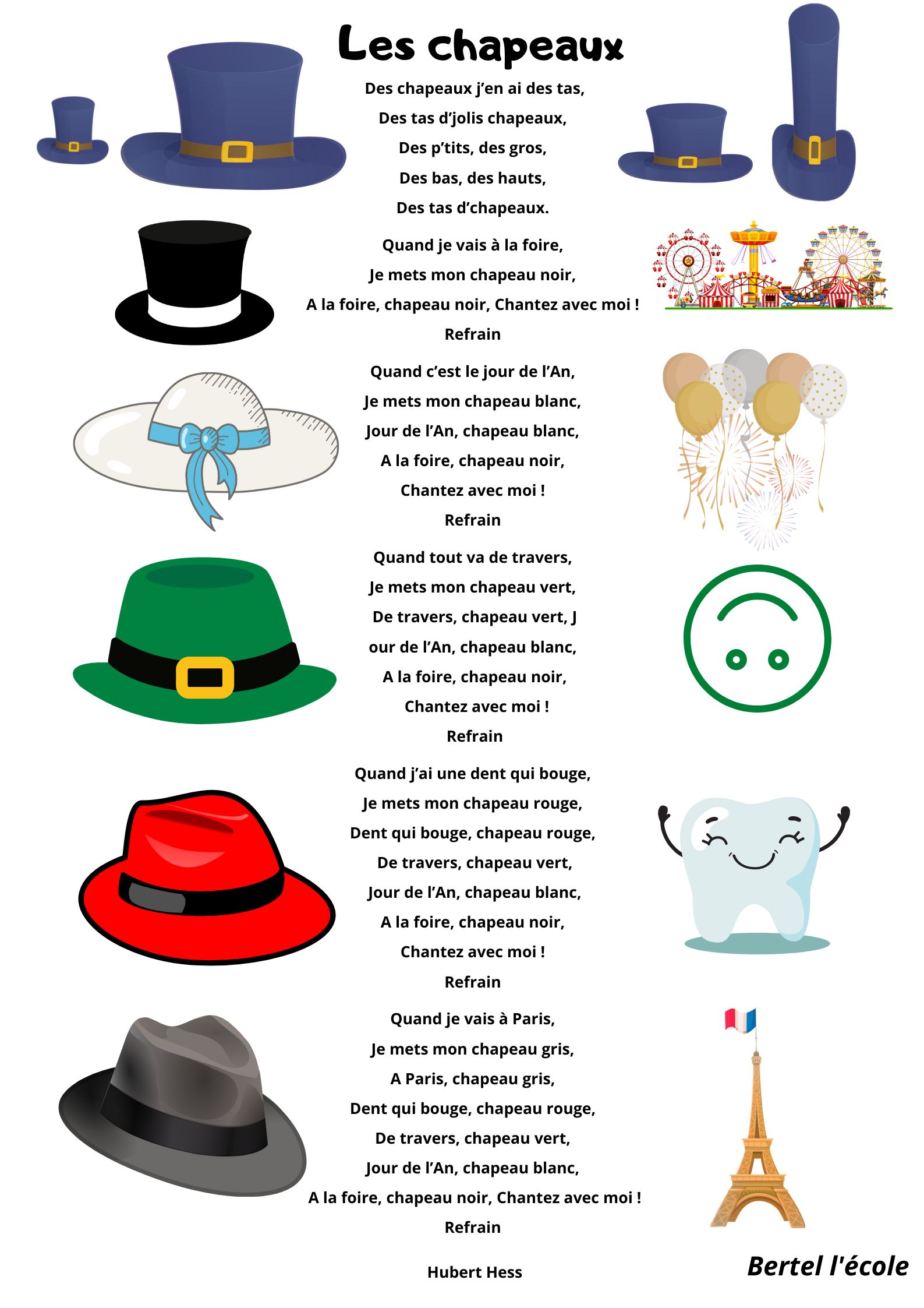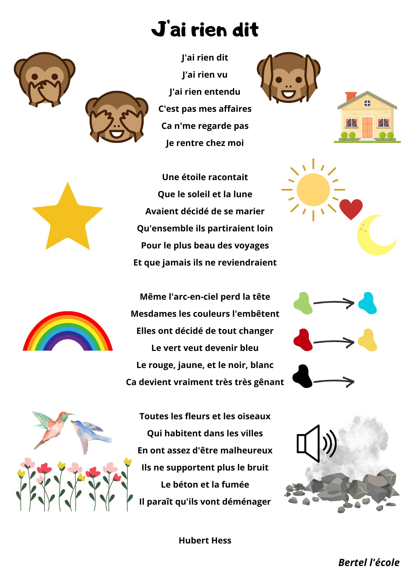 Voici quelques petites comptines et chants que j’ai remis en page grâce à CANVA. Il y a les classiques mais aussi les chants et comptines utilisés dans les manuels « Vers la phono. » Vous pouvez télécharger le format à afficher en classe ainsi que celui à distribuer aux élèves afin qu’ils le décorent.