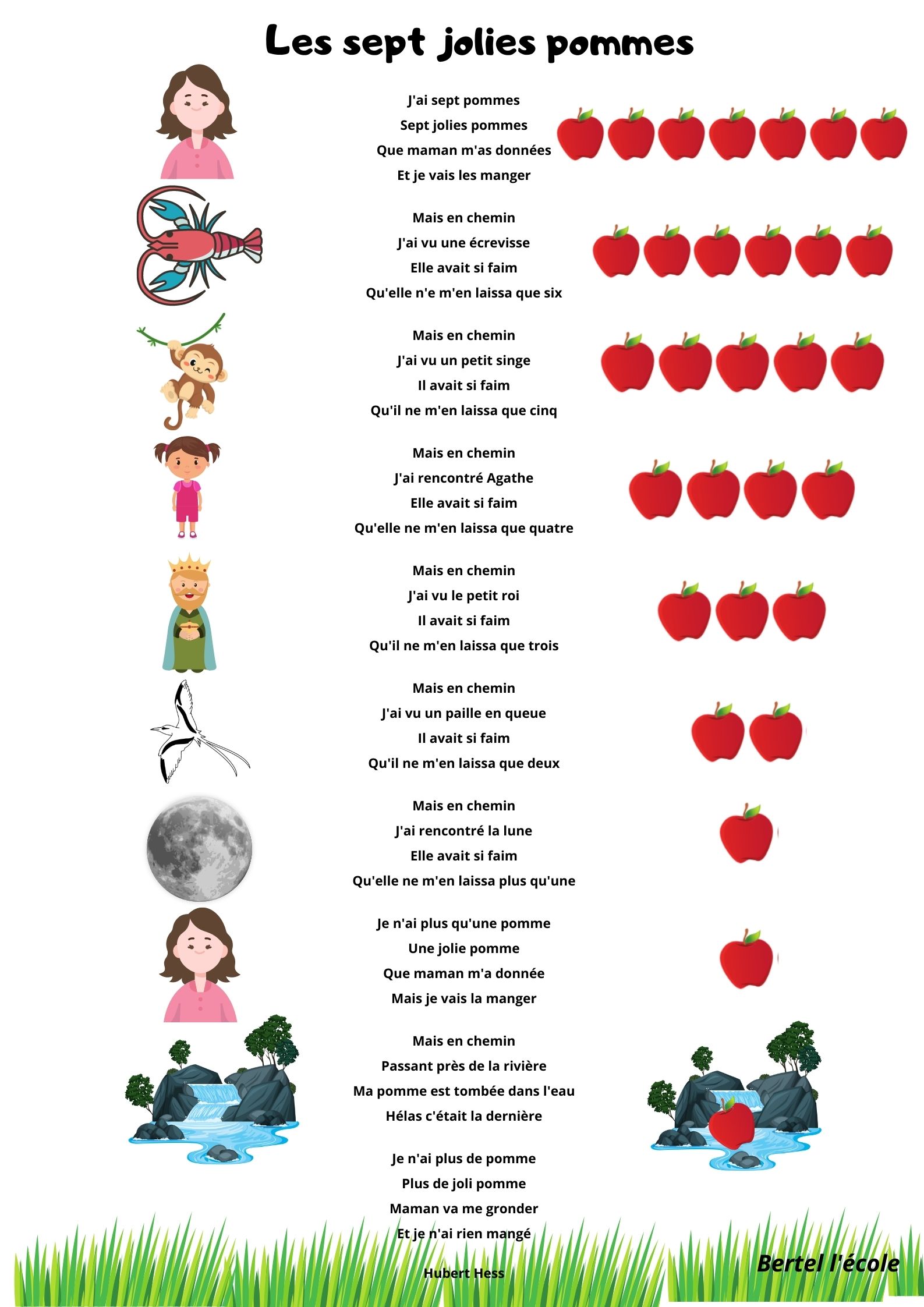 Je vous propose aussi un petit format sous formes d’étiquettes afin de reconstituer la comptine au fur et à mesure avec les élèves.