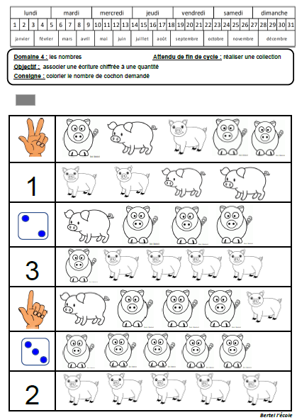 – Pour travaillere les quantités de 1 à 3