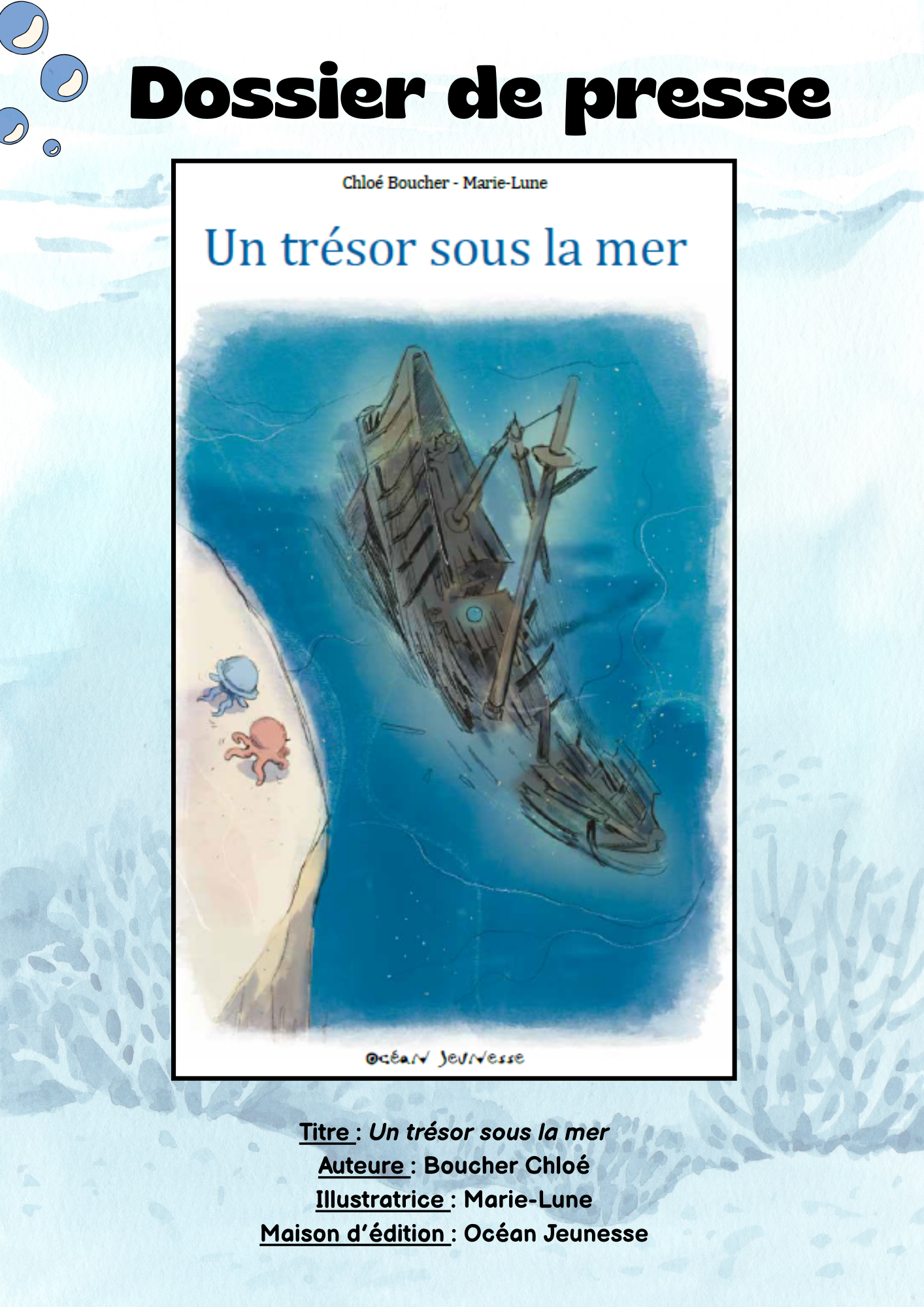 Je tiens encore une fois à remercier Océan Jeunesse d’avoir accepté ce projet. Je suis arrivée à un salon du livre jeunesse avec mon manuscrit sous le bras et cette maison d’édition a bien voulu me donner ma chance.