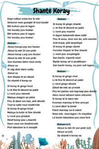 Il s’agit de 11 artistes qui se sont unis pour sensibiliser les réunionnais (mais pas que !) sur la fragilité des coraux. Un titre écrit par Isabelle Testa et une musique composée par Sskyron. J’ai récupéré les paroles. J’espère qu’il n’y a pas d’erreurs. N’hésitez pas à m’écrire si vous remarquez des coquilles.