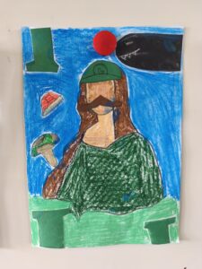 Pour La Joconde, je demande aux élèves de la transformer en un personnage connu. Il peut s’agir d’un personnage que l’on trouve dans un conte, un jeu vidéo, une série ou même un artiste !