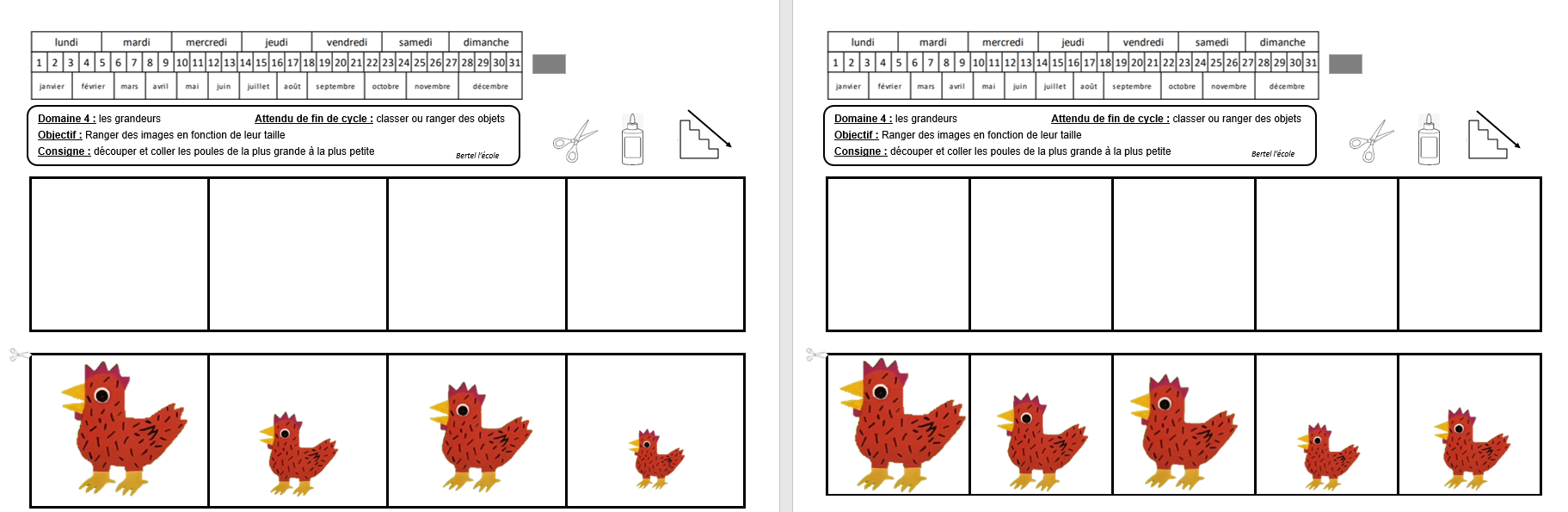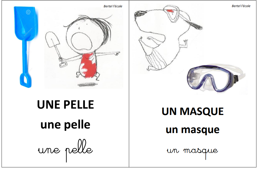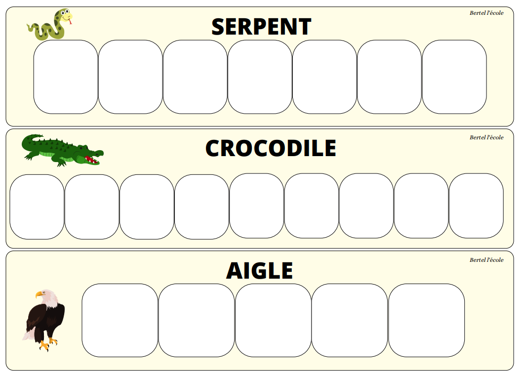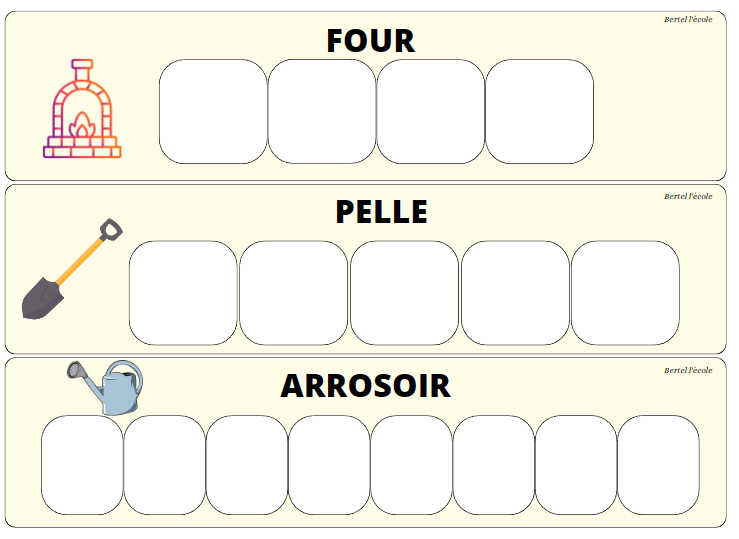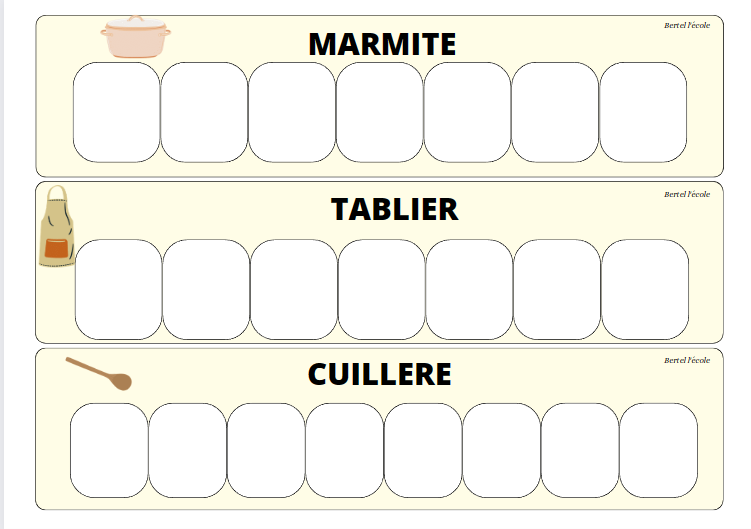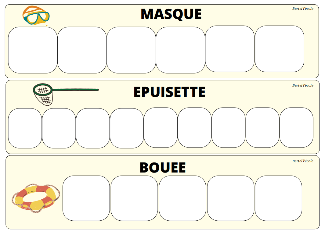 Je n’ai pas mis les déterminants pour ne pas perturber les élèves. Je les ai rajoutés une fois l’exercice terminé. Ici l’élève doit reconnaitre les mots identiques et les coller sur le modèle.
