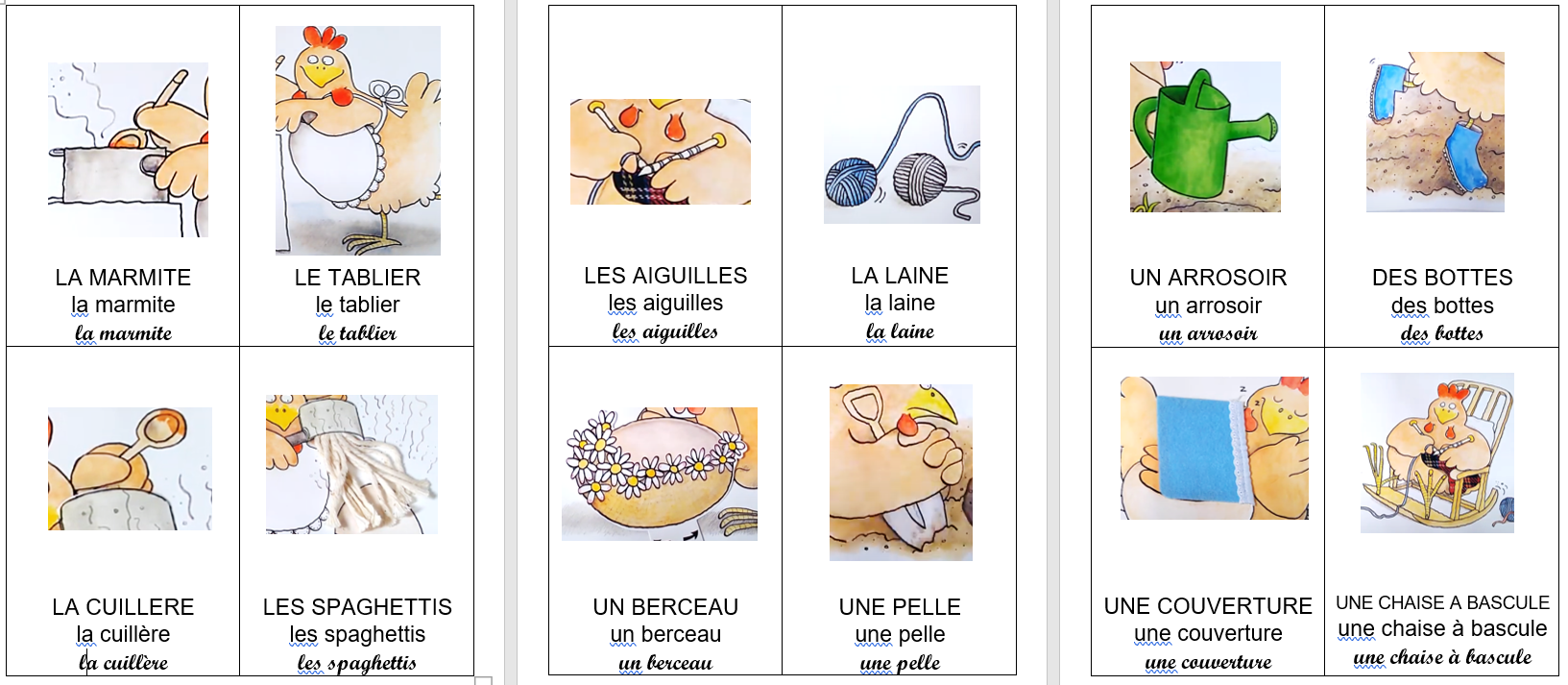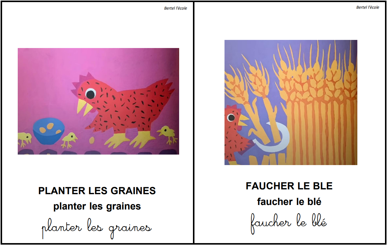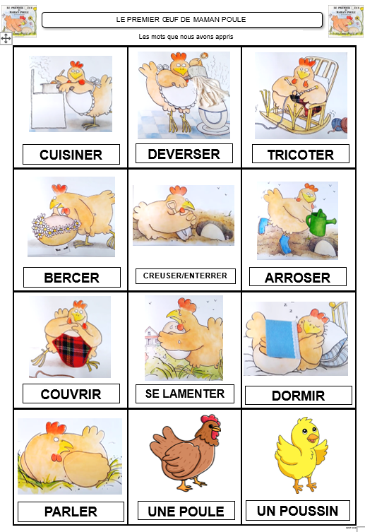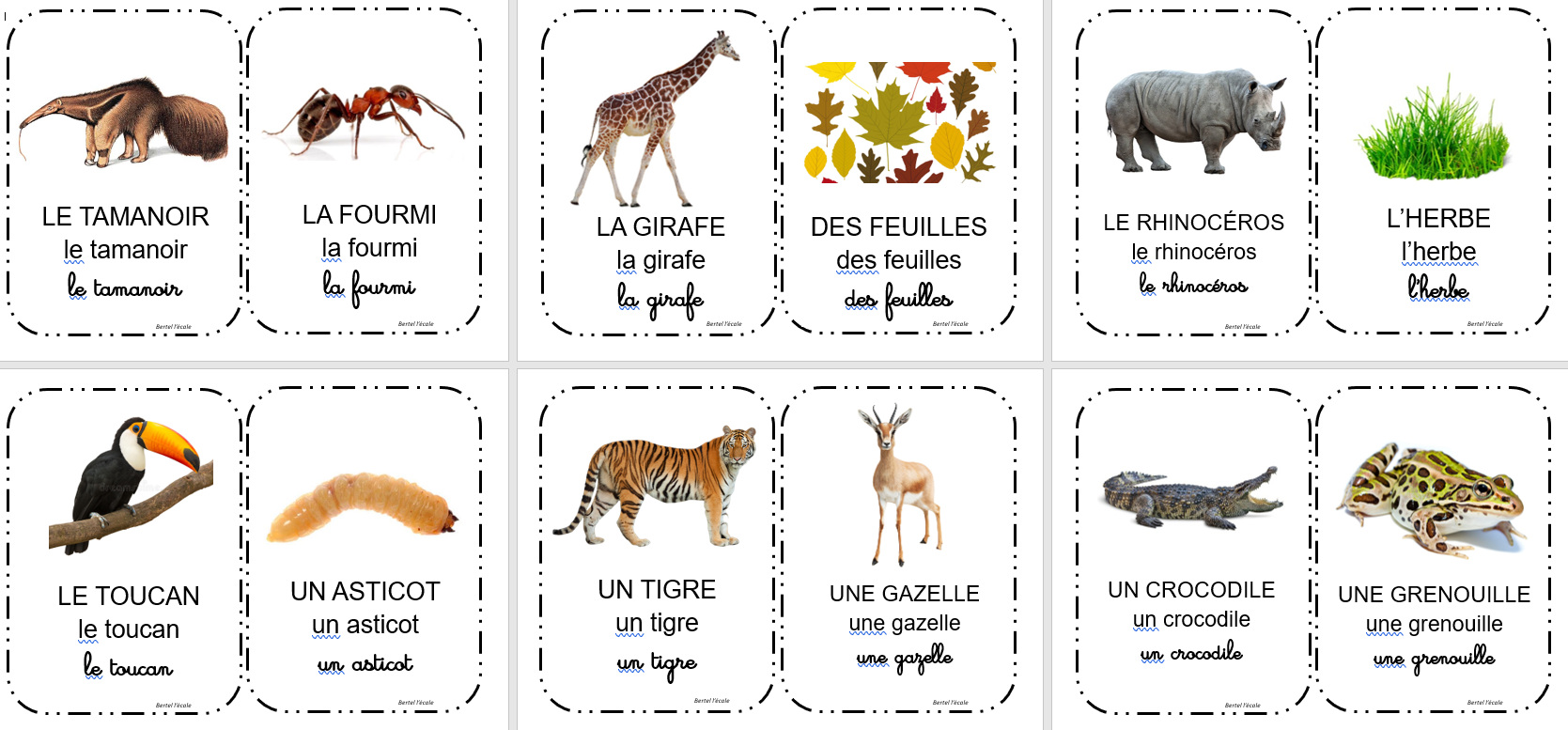 Voici les cartes des différents éléments de l’histoire ainsi que les cartes nombres pour les afficher au tableau