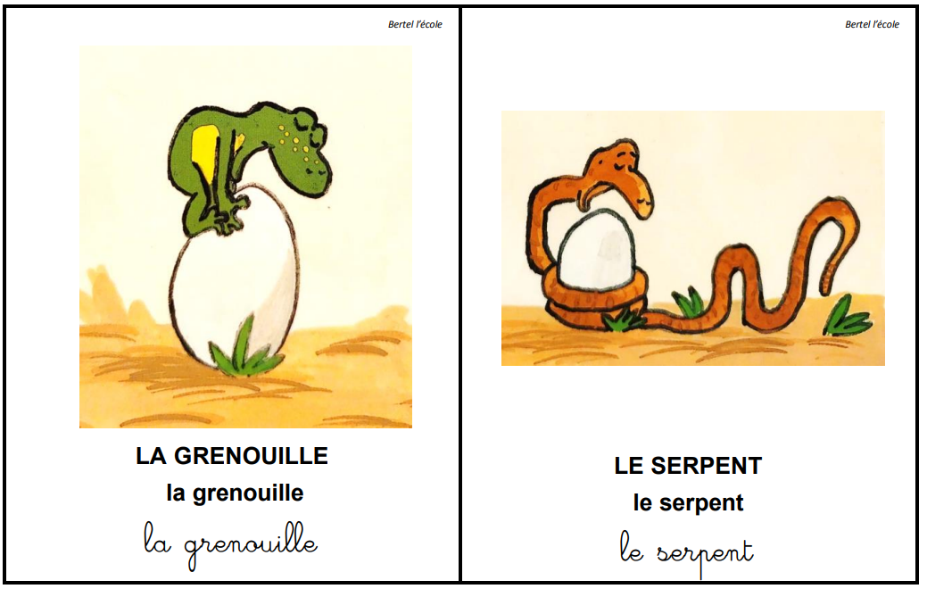 Il y a les animaux que la grenouille rencontre mais aussi ce qu’ils mangent.